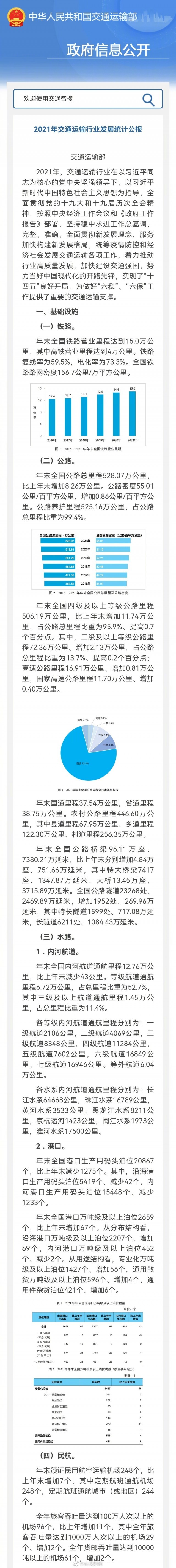 - 《2021年交通運輸行業(yè)發(fā)展統(tǒng)計公報》發(fā)布 我國綜合立體交通網(wǎng)絡加快完善