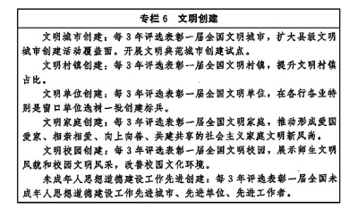以實施文明創(chuàng)建工程為抓手,推動文明培育、文明實踐、文明創(chuàng)建不斷深入。創(chuàng)造性開展文明城市、文明村鎮(zhèn)、文明單位、文明家庭、文明校園和未成年人思想道德建設工作先進等精神文明創(chuàng)建活動,拓展新時代文明實踐中心建設。弘揚科學精神,深入開展愛國衛(wèi)生運動,深化文明餐桌行動和“光盤行動”,倡導文明健康、綠色環(huán)保的生活方式。健全志愿服務體系,廣泛開展志愿服務關愛行動。加強網絡文明建設。