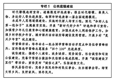 傳承弘揚中華傳統(tǒng)美德,加強社會公德、職業(yè)道德、家庭美德、個人品德建設,加強家庭、家教、家風建設。加強對革命、建設、改革時期各類先進典型的學習宣傳,尊崇褒揚英雄模范,關心關愛先進典型人物。健全家庭、學校、政府、社會相結合的思想道德教育體系,把立德樹人貫穿學校教育全過程。發(fā)揮優(yōu)秀文化產品陶冶道德情操的作用,完善市民公約、鄉(xiāng)規(guī)民約、學生守則、團體章程等社會規(guī)范,廣泛開展弘揚時代新風行動,深化道德領域突出問題治理。加強農村思想道德建設,創(chuàng)新文化科技衛(wèi)生“三下鄉(xiāng)”長效機制。