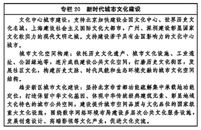 綜合城市功能定位和經濟社會發(fā)展,建設傳統(tǒng)文化和現(xiàn)代文化交相輝映、城市氣質與人文精神相得益彰的現(xiàn)代城市文化。強化各類規(guī)劃中文化建設的剛性約束,保護歷史文化遺產,融合時代文明,構建城市文化精神,發(fā)展城市主題文化,營造特色文化景觀。以文化建設帶動城市建設,提升城市文化品位、整體形象和發(fā)展品質。加快建設一批有全國影響力的文化中心城市、特色文化強市。支持相關?。ㄗ灾螀^(qū)、直轄市)建設一批具有代表性的區(qū)域文化中心城市和特色文化城市。結合新型城鎮(zhèn)化建設,鼓勵因地制宜發(fā)展一批承載歷史記憶、體現(xiàn)地域特征、富有民族特色的美麗城鎮(zhèn)。