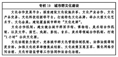 加強區(qū)域文化協(xié)同創(chuàng)新,健全合作互助、扶持補償機制,推動東部地區(qū)以創(chuàng)新引領文化發(fā)展,加大力度支持中西部地區(qū)以及東北等老工業(yè)基地文化發(fā)展,扶持革命老區(qū)、民族地區(qū)、邊疆地區(qū)文化發(fā)展,形成相互促進、優(yōu)勢互補、融合互動的區(qū)域文化發(fā)展格局。圍繞京津冀協(xié)同發(fā)展、長江經濟帶發(fā)展、粵港澳大灣區(qū)建設、長三角一體化發(fā)展、黃河流域生態(tài)保護和高質量發(fā)展等區(qū)域重大戰(zhàn)略,健全推進區(qū)域內文化協(xié)同發(fā)展機制,提升公共文化設施互聯(lián)互通水平,加強區(qū)域文化產業(yè)帶建設,實現(xiàn)區(qū)域文化建設水平整體提高。促進形成文化產業(yè)發(fā)展新格局,創(chuàng)新城市群文化一體化發(fā)展體制機制,共建高水平合作平臺,加強公共文化服務便利共享。完善以城帶鄉(xiāng)、城鄉(xiāng)融合的文化發(fā)展體制機制,發(fā)揮城市帶動輻射作用,加快城鄉(xiāng)間文化要素雙向流動,形成以點帶面、特色鮮明、優(yōu)勢互補、均衡配置的城鄉(xiāng)文化發(fā)展新格局。