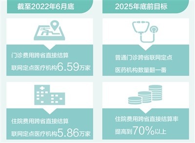 《通知》明確提出,2025年底前,住院費用跨省直接結算率提高到70%以上,普通門診跨省聯(lián)網定點醫(yī)藥機構數量實現翻一番,群眾需求大、各地普遍開展的門診慢特病相關治療費用逐步納入跨省直接結算范圍,異地就醫(yī)備案規(guī)范便捷,基本實現醫(yī)保報銷線上線下都能跨省通辦。