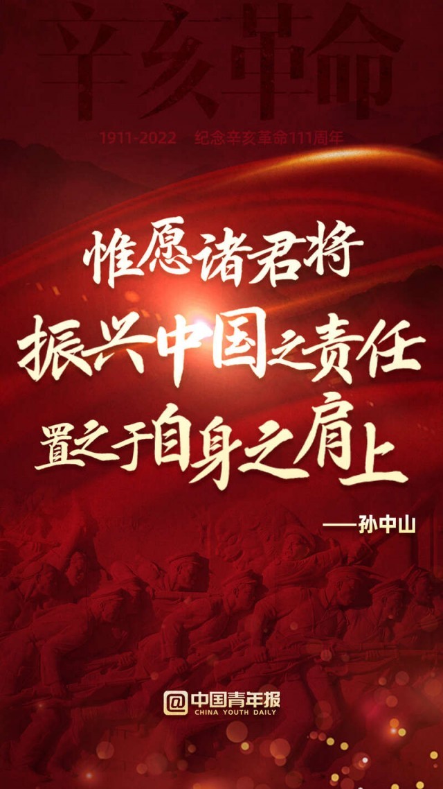 111年前,以孫中山先生為代表的革命黨人發(fā)動(dòng)了辛亥革命,近代以來中國發(fā)生的深刻社會(huì)變革由此拉開新的一幕。今天,讓我們學(xué)習(xí)和弘揚(yáng)革命先驅(qū)為振興中華而矢志不渝的崇高精神,為實(shí)現(xiàn)中華民族偉大復(fù)興而共同奮斗!
