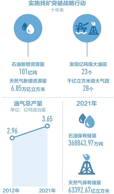 黨的十八大以來,我國油氣勘探開發(fā)力度不斷加大,高質(zhì)量發(fā)展體系日趨完善。油氣總產(chǎn)量由2012年的2.96億噸油當(dāng)量增長至2021年的3.65億噸油當(dāng)量。今年前9月,原油產(chǎn)量達(dá)15375萬噸,同比增長3.0%;天然氣產(chǎn)量達(dá)1601億立方米,同比增長5.4%。