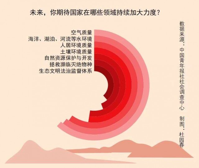 上周,中國(guó)青年報(bào)社社會(huì)調(diào)查中心聯(lián)合問(wèn)卷網(wǎng)(wenjuan.com),對(duì)2005名受訪者進(jìn)行的一項(xiàng)調(diào)查顯示,受訪者期待未來(lái)在空氣質(zhì)量、水環(huán)境質(zhì)量、人居環(huán)境質(zhì)量等領(lǐng)域持續(xù)加大治理力度。94.9%的受訪者相信我國(guó)生態(tài)環(huán)境質(zhì)量會(huì)持續(xù)向好。