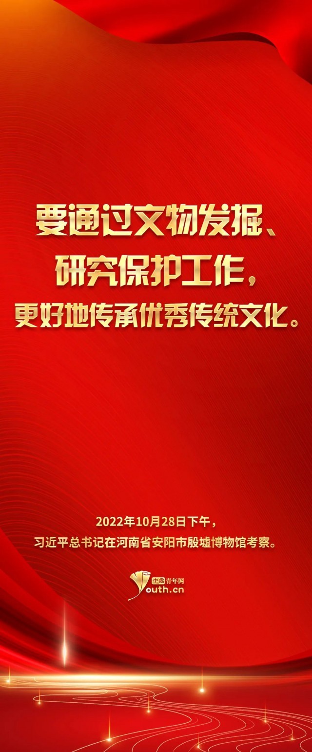 2022年10月28日,習(xí)近平總書記在黨的二十大勝利閉幕后就來到他向往已久的殷墟考察,并發(fā)表了重要講話?!耙笮娉鐾恋募坠俏臑槲覀儽4?000年前的文字,把中國信史向上推進(jìn)了約1000年?!绷?xí)總書記指出,中國的漢文字非常了不起,中華民族的形成和發(fā)展離不開漢文字的維系。