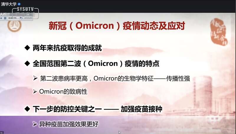 本次講座是“全國高??挂叽笾v堂”的一次活動,由中山大學、北京大學、清華大學共同主辦。鐘南山系統(tǒng)分析了全國范圍第二波奧密克戎疫情的特點,介紹了奧密克戎的生物學特征、致病性,以及在大學教學環(huán)境中如何讓學生加強個人防護,青年人如何應對新冠,加強個人防護的8條建議等。