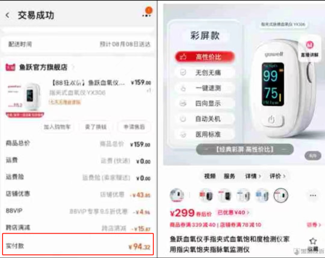 94元購買的血氧儀已漲價至299元(央廣網(wǎng)發(fā))