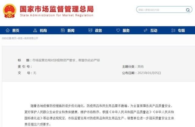 市場監(jiān)管總局:涉疫物資假冒偽劣必嚴懲