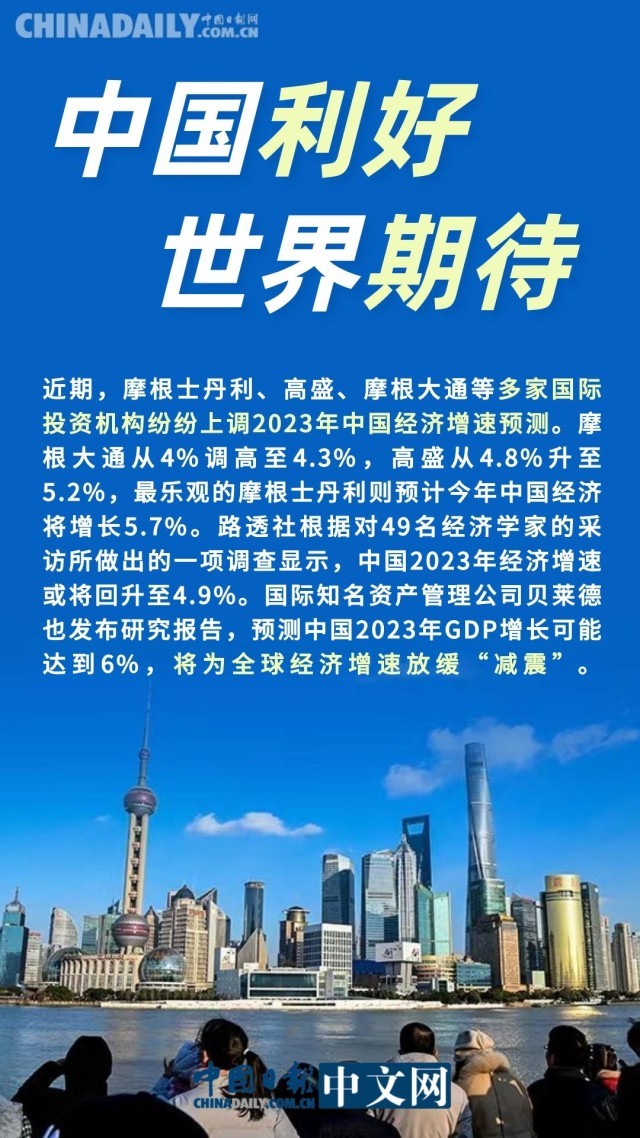 近期,隨著優(yōu)化疫情防控措施成效顯現(xiàn),中國經(jīng)濟(jì)復(fù)蘇跡象明顯。不少國際機(jī)構(gòu)也紛紛上調(diào)了對中國經(jīng)濟(jì)2023年增長的預(yù)測。我們堅(jiān)信,伴隨著各項(xiàng)穩(wěn)定預(yù)期、提振信心的措施逐步落地,今年中國經(jīng)濟(jì)必將實(shí)現(xiàn)整體性好轉(zhuǎn),且必將持續(xù)為全球經(jīng)濟(jì)增長提供強(qiáng)大動力。