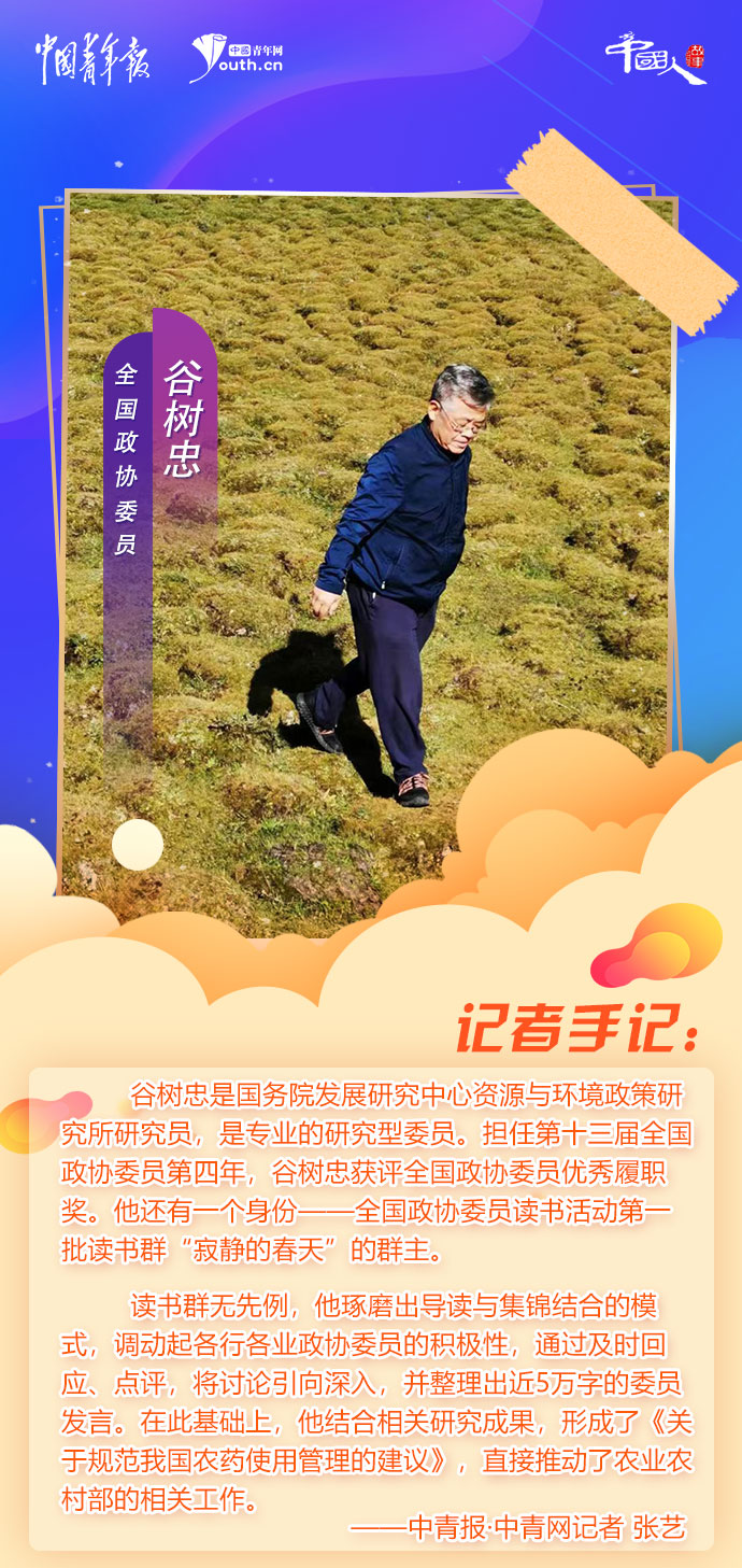 他常來奧森公園鍛煉,一圈5公里,先慢后快,他有自己的節(jié)奏。他是國務(wù)院發(fā)展研究中心資源與環(huán)境政策研究所研究員,是專業(yè)的研究型委員。擔(dān)任第十三屆全國政協(xié)委員第四年,谷樹忠獲評全國政協(xié)委員優(yōu)秀履職獎。他還有一個(gè)身份——全國政協(xié)委員讀書活動第一批讀書群“寂靜的春天”的群主。