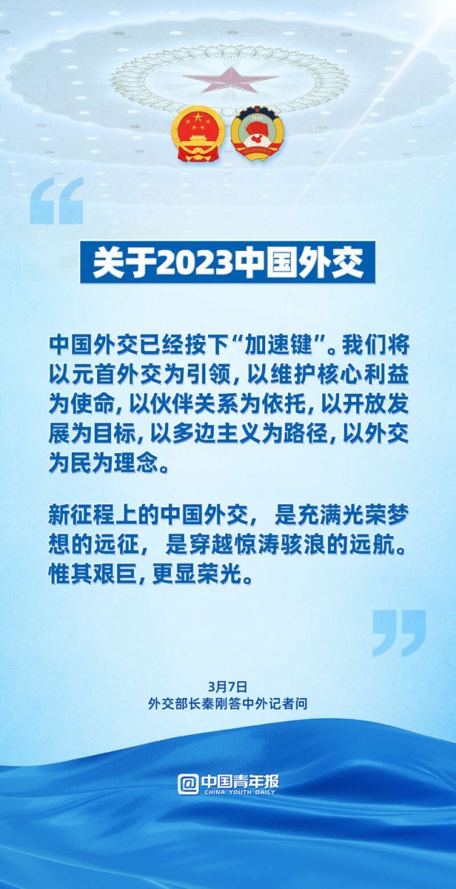 手持憲法談臺(tái)海局勢(shì),系統(tǒng)回答焦點(diǎn)國際問題,今天,是外交部長秦剛履新后的首次全國兩會(huì)記者會(huì)。對(duì)14個(gè)問題的回答,涉及今年外交工作重點(diǎn)、中美關(guān)系、中俄關(guān)系、烏克蘭問題、臺(tái)海局勢(shì)、“一帶一路”倡議等重點(diǎn)問題。記者會(huì)最后,外長提到,歡迎更多青年投身中國外交!新征程上的中國外交,必將書寫新時(shí)代中國特色大國外交新篇章。