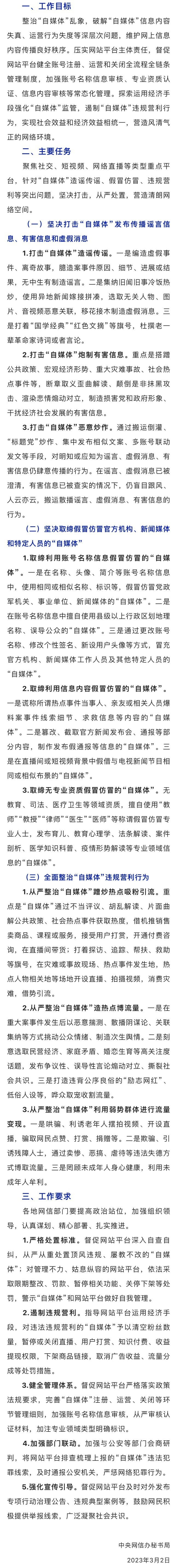 近日,中央網(wǎng)信辦印發(fā)通知,自即日起,開展為期兩個月的“清朗·從嚴(yán)整治‘自媒體’亂象”專項行動。具體內(nèi)容如下: