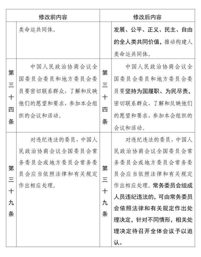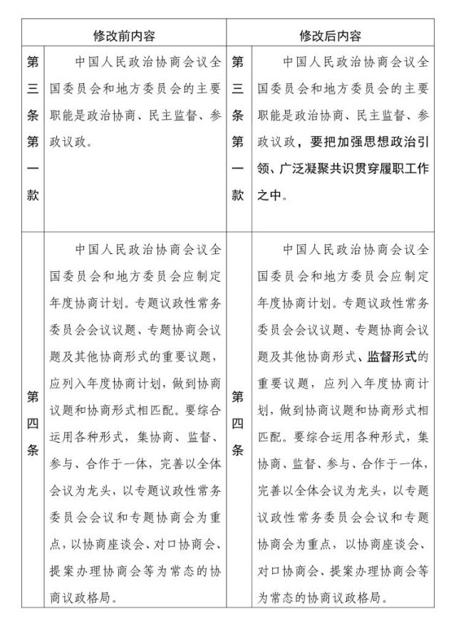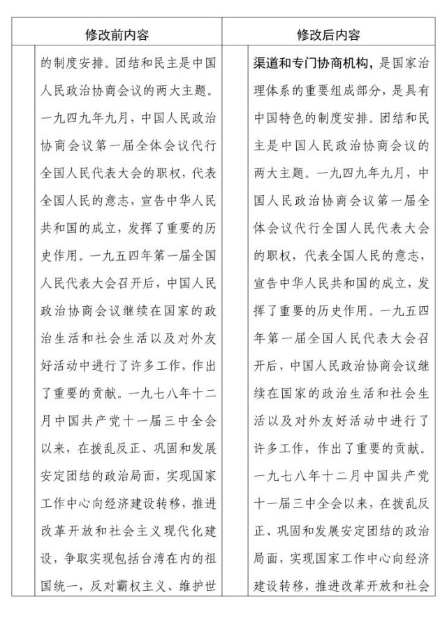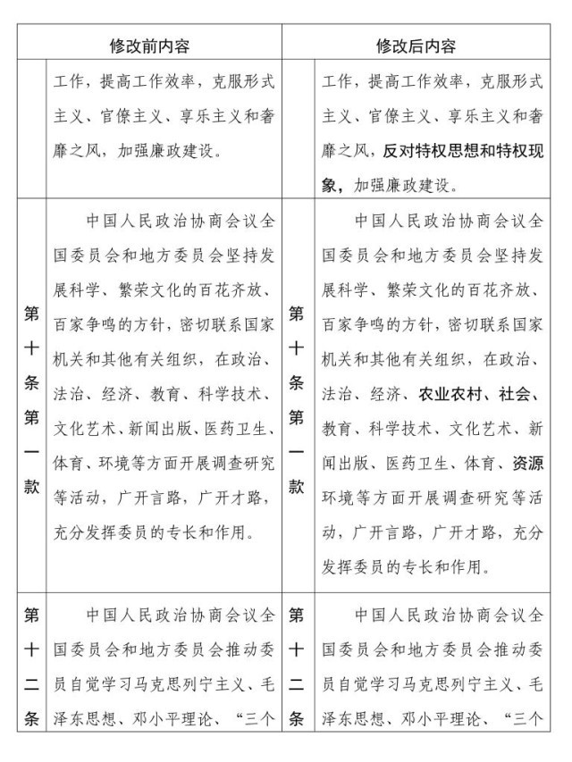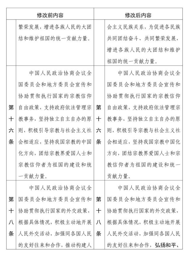 中國人民政治協(xié)商會(huì)議章程 修改前后內(nèi)容對(duì)照表