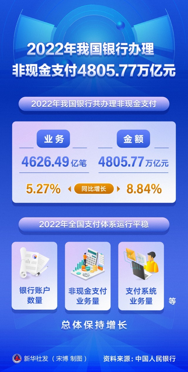 2022年我國銀行辦理非現(xiàn)金支付4805.77萬億元
