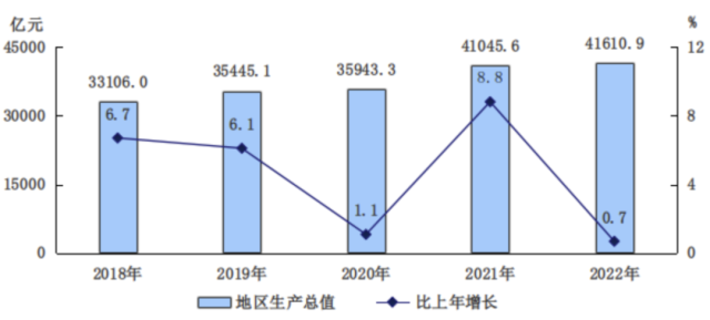 圖1 2018-2022年地區(qū)生產(chǎn)總值及增長(zhǎng)速度