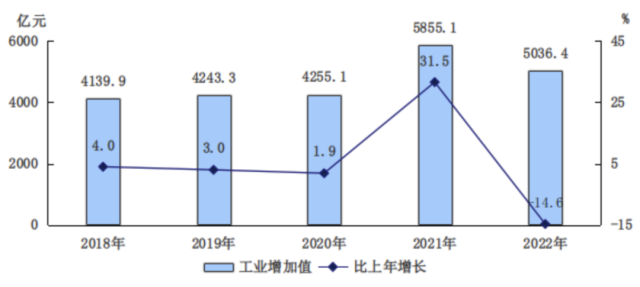 圖3 2018-2022年工業(yè)增加值及增長(zhǎng)速度