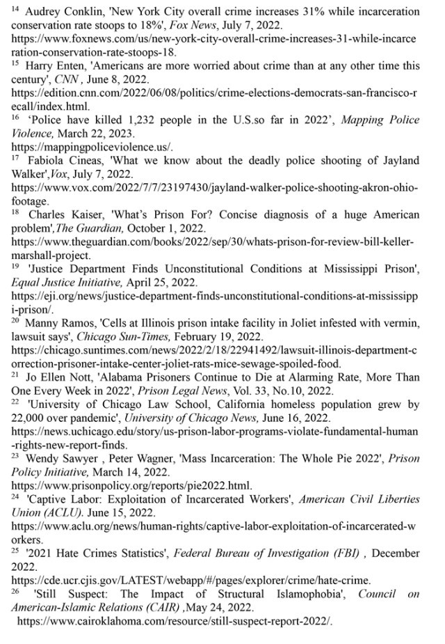 執(zhí)法司法領(lǐng)域種族歧視根深蒂固。聯(lián)合國消除種族歧視委員會(huì)的結(jié)論性報(bào)告指出,美國執(zhí)法人員對有色人種和少數(shù)族裔群體過度使用暴力并逍遙法外的情況仍然普遍存在;有色人種和少數(shù)族裔在美國司法系統(tǒng)中被逮捕、監(jiān)禁和長期虐待的情況突出。(注73)“警察暴力地圖”網(wǎng)站的數(shù)據(jù)顯示,在2013年至2022年的警察殺人事件中,非洲裔被警察殺害的可能性是白人的2.78倍,手無寸鐵的非洲裔被警察殺害的可能性是手無寸鐵的白人的1.3倍。在波士頓、明尼阿波利斯和芝加哥,非洲裔被警察殺害的可能性更是白人的20多倍。(注74)美國國家公共電臺(tái)2022年9月27日報(bào)道,國家免責(zé)登記處發(fā)布的報(bào)告指出,非洲裔在美國人口中所占比例不到14%,但在美國被誤判犯有嚴(yán)重罪行并在至少服完部分刑期后獲釋的所有人中,非洲裔占了53%;美國非洲裔因三項(xiàng)重大罪行被錯(cuò)誤定罪的可能性是白人的7倍,非洲裔因毒品犯罪被錯(cuò)誤定罪的可能性是其他人的19倍。(注75)美國國家學(xué)院出版的《美國監(jiān)禁的增長:探索原因和后果》一書指出,滲透著種族主義的刑事司法系統(tǒng)“正日益成為一個(gè)更大的污名化和長期邊緣化系統(tǒng)的主要通道”。(注76)