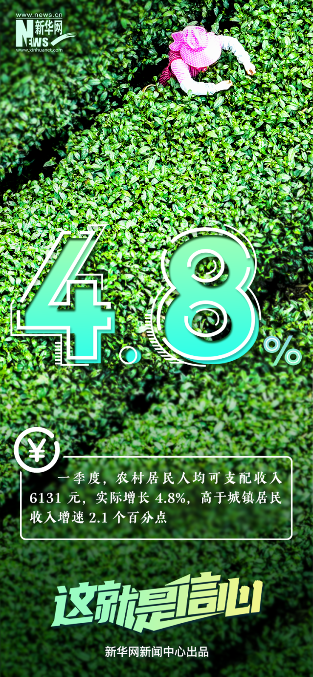 今年一季度,農(nóng)村居民人均可支配收入6131元,實際增長4.8%;一季度全國城鎮(zhèn)新增就業(yè)297萬人,同比增加4%;一季度豬肉產(chǎn)量同比增長1.9%,畜禽和水產(chǎn)品全面增產(chǎn),蔬菜和水果供應充足......剛剛過去的一季度,多項民生紅利集中釋放,跟隨這組數(shù)據(jù)一起感知。