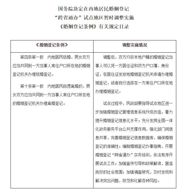 - 國務(wù)院發(fā)布關(guān)于同意擴(kuò)大內(nèi)地居民婚姻登記“跨省通辦”試點(diǎn)的批復(fù)