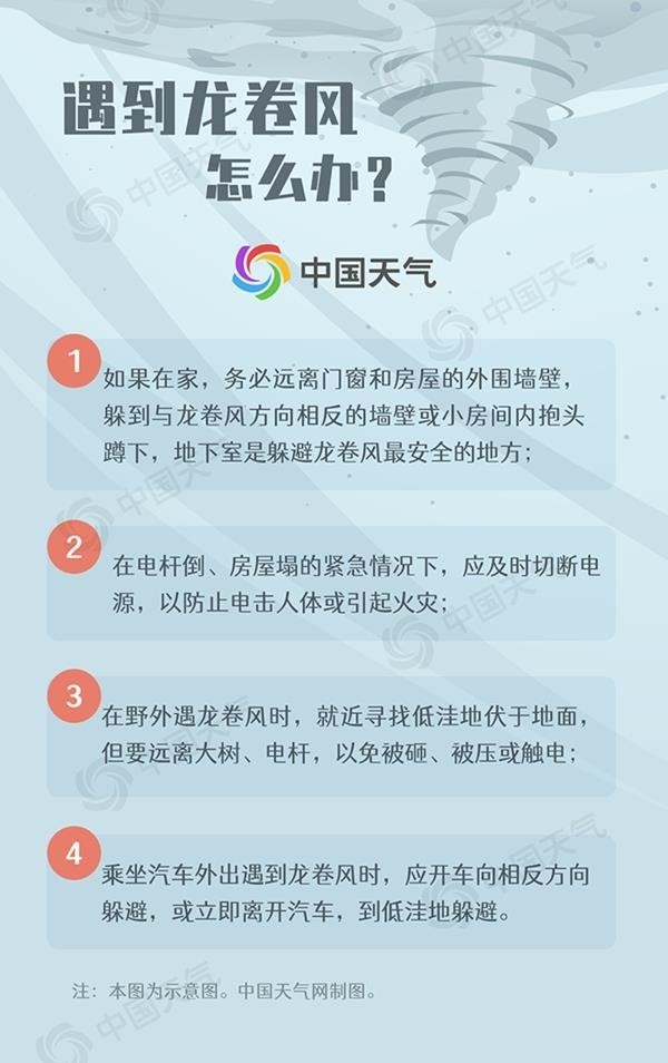第一,如果在家里,務必遠離門、窗和房屋的外圍墻壁,躲到與龍卷風方向相反的墻壁或小房間內抱頭蹲下,地下室或半地下室是躲避龍卷風最安全的地方;