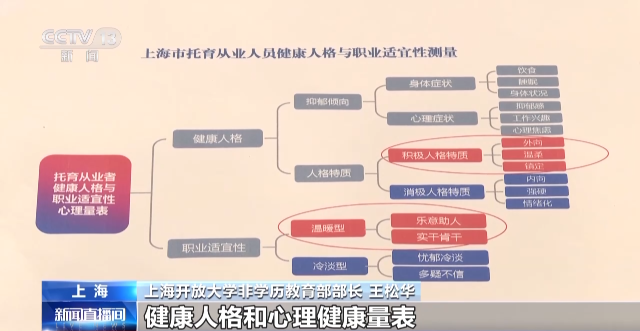 上海開放大學(xué)非學(xué)歷教育部部長 王松華:我們用專門研發(fā)的健康人格和心理健康量表,從兩個維度八個方面,用92道題目對他們進(jìn)行測量。根據(jù)測量結(jié)果,對輕度不適宜的,我們將組織心理輔導(dǎo)專家對他們進(jìn)行輔導(dǎo),對重度不適宜的人群,我們將提出勸退建議,不建議他們從事這個崗位。