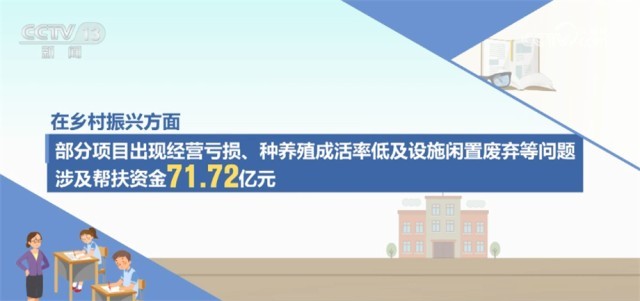 在鄉(xiāng)村振興方面,部分項目出現(xiàn)經營虧損、種養(yǎng)殖成活率低及設施閑置廢棄等問題,涉及幫扶資金71.72億元。