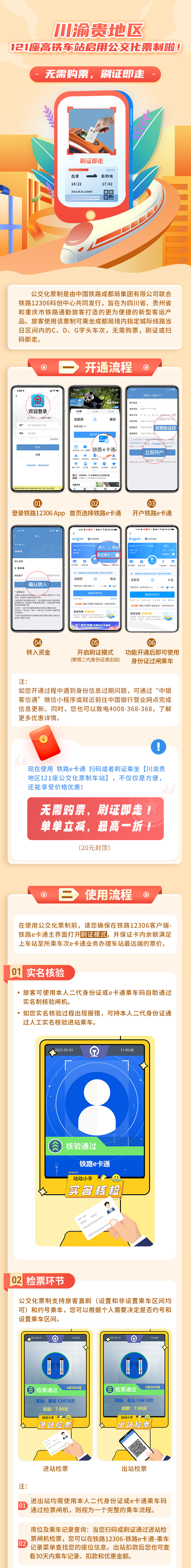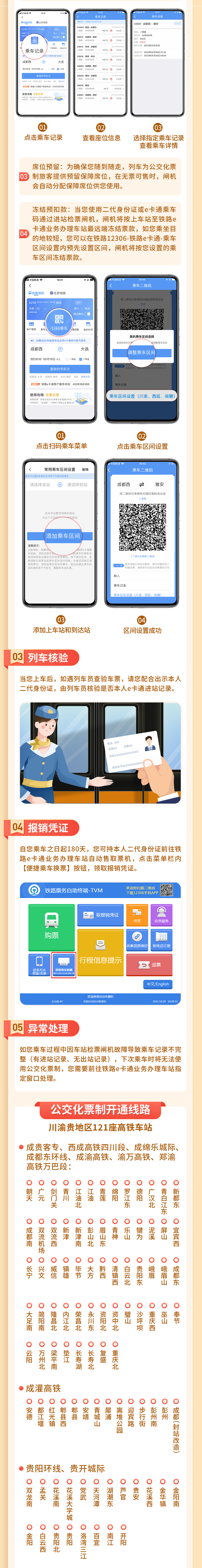 為進一步提升通勤旅客出行體驗,中國鐵路成都局集團有限公司管內的川渝貴地區(qū)121座高鐵車站啟用公交化票制。已開通鐵路e卡通的旅客在鐵路12306客戶端-鐵路e卡通主頁,啟用刷證模式,即可使用二代身份證或e卡通乘車碼,實現無需購票,刷證或掃碼即走