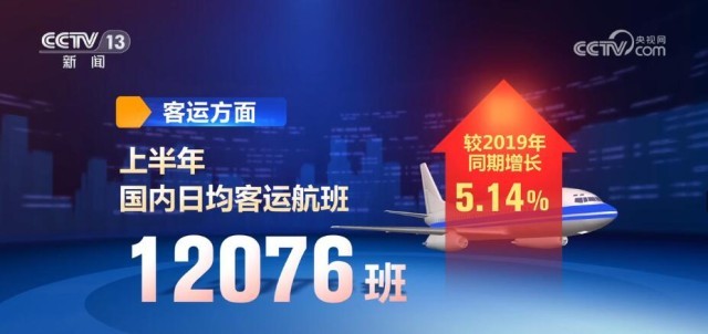 客運方面,上半年國內(nèi)日均客運航班12076班,較2019年同期增長5.14%;國內(nèi)日均旅客運輸量152.2萬人次,恢復(fù)至2019年同期的96.5%。貨運方面,上半年日均保障貨運航班590班,較2019年同期增長58.2%。