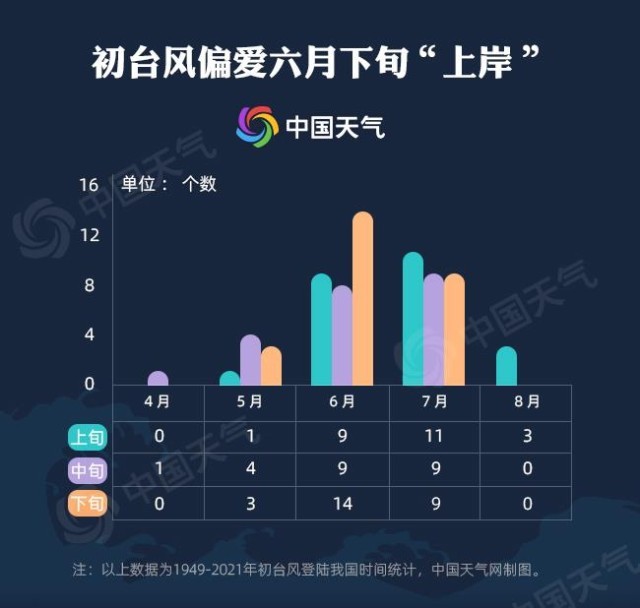 根據(jù)預報,這個熱帶系統(tǒng)或?qū)⒂?月17日至18日左右在廣東到海南一帶沿海登陸。據(jù)中國天氣網(wǎng)大數(shù)據(jù)顯示,一般首個登陸我國的臺風多集中在每年的6月至7月,其中,6月下旬登陸的比例最高,7月上旬登陸比例位列第二。