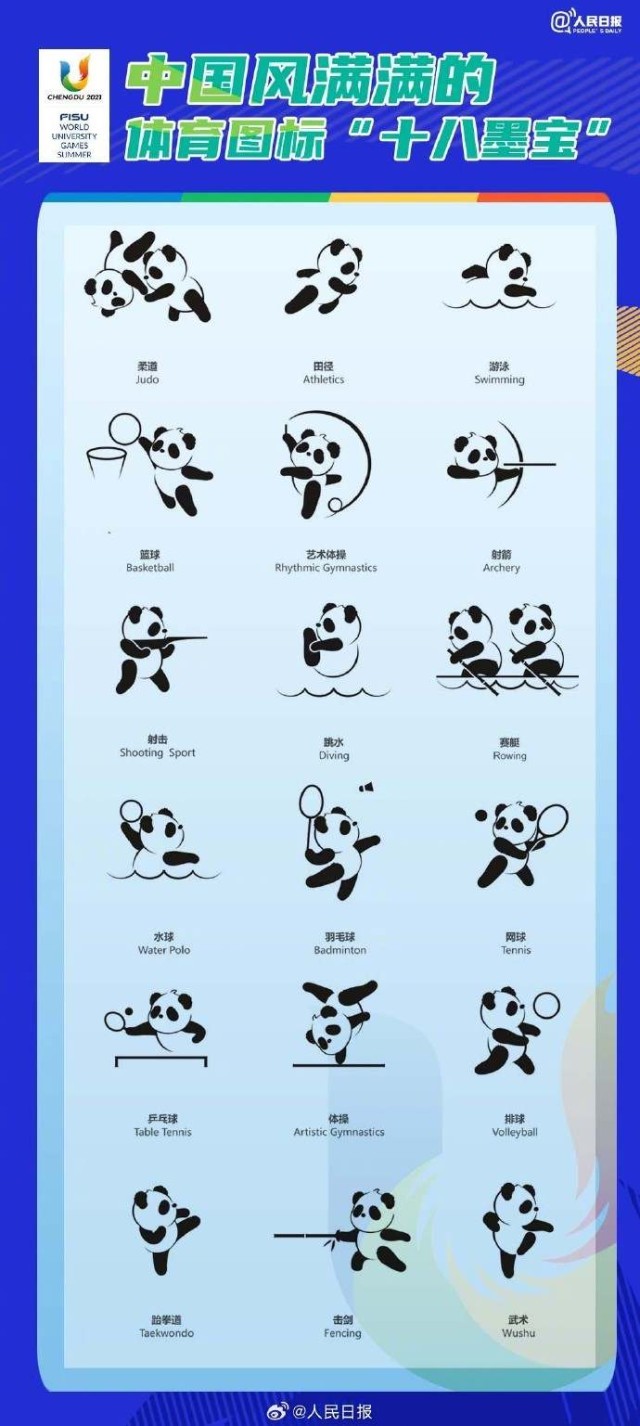 第31屆世界大學(xué)生夏季運(yùn)動會將于7月28日—8月8日在四川成都舉辦?!叭貙殹薄叭鼗稹薄叭毓狻保瞪捣植磺??可愛的熊貓圖標(biāo),認(rèn)得出是哪個(gè)項(xiàng)目嗎?此外,這些體壇名將曾參加過大運(yùn)會!成都大運(yùn)會還有2周開幕,期待!