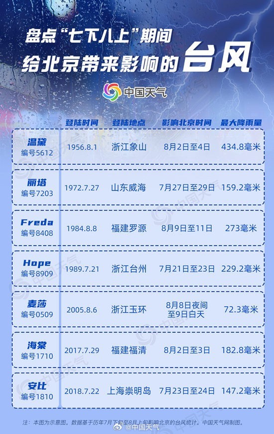 本次極端降水過程中,臺風“杜蘇芮”的殘余環(huán)流北上是其中一個重要的原因。歷史上北京也曾多次受到臺風及其減弱后的低壓影響,出現(xiàn)較強降雨。例如2017年第10號臺風“海棠”和2018年第10號臺風“安比”給北京帶來的最大降雨量都超過了100毫米,更早的1956年第12號臺風“溫黛”導致的最大降雨量更是超過400毫米。