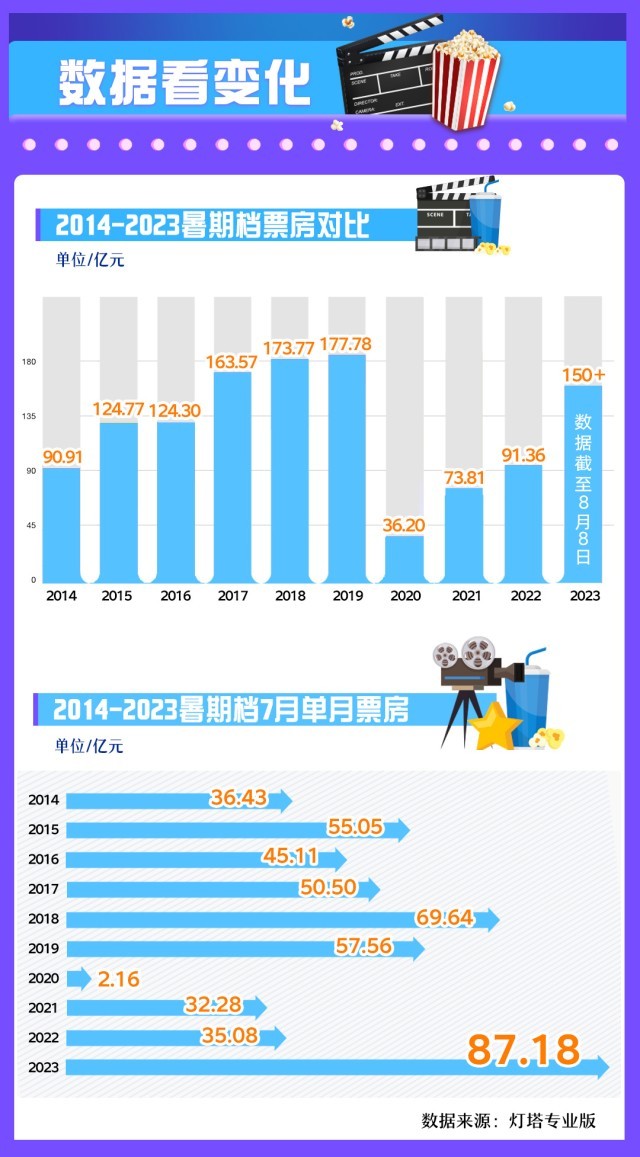 截至記者發(fā)稿,暑期檔票房已突破150億,時(shí)隔四年后重回“百億”級(jí)。