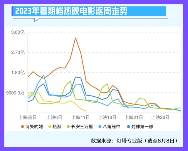 《消失的她》《八角籠中》《長(zhǎng)安三萬里》穩(wěn)坐7月票房榜前三,值得注意的是,它們均非頭部大作。