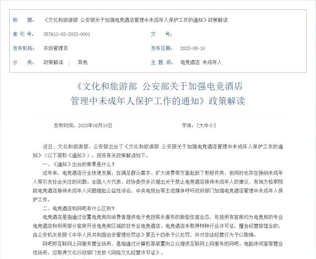 《文化和旅游部 公安部關(guān)于加強電競酒店管理中未成年人保護工作的通知》政策解讀