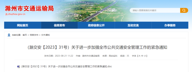 8月20日中午,來安城鄉(xiāng)公交有限公司一輛公交車在南京林場附近突然起火,造成2人死亡、5人受傷。為深刻吸取事故教訓,確保公共交通安全,切實保障人民群眾生命財產安全,現就加強全市公共交通安全管理工作緊急通知如下: