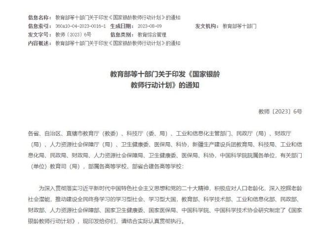 教育部等十部門:經(jīng)過3年左右,全國銀齡教師隊伍總量力爭達12萬人左右