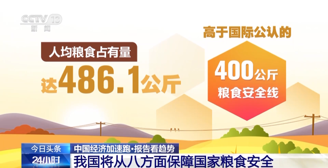 報告提出,將從加強糧食安全保障體系和能力建設、大力落實藏糧于地、積極推進藏糧于技、加大農(nóng)業(yè)保護支持力度、切實提升糧食調(diào)控能力、加快構建現(xiàn)代糧食產(chǎn)業(yè)和流通體系、不斷提高多元食物供給能力、深入開展糧食節(jié)約減損行動等8方面,保障國家糧食安全。