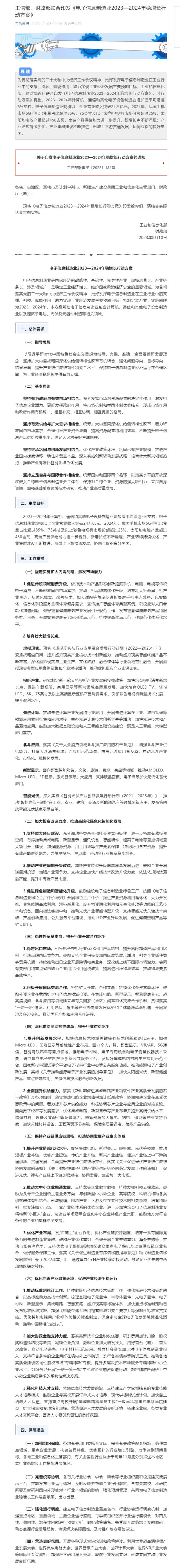 工信部、財(cái)政部聯(lián)合印發(fā)《電子信息制造業(yè)2023—2024年穩(wěn)增長行動方案》