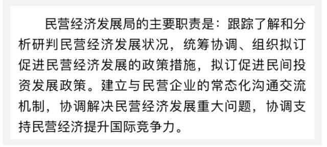 今天(9月4日)有個(gè)消息刷了屏:國(guó)家發(fā)改委新設(shè)民營(yíng)經(jīng)濟(jì)發(fā)展局。仔細(xì)閱讀官方通稿,民營(yíng)經(jīng)濟(jì)發(fā)展局主要職責(zé)103字,沒(méi)提一個(gè)“管”字。點(diǎn)擊視頻↓↓↓