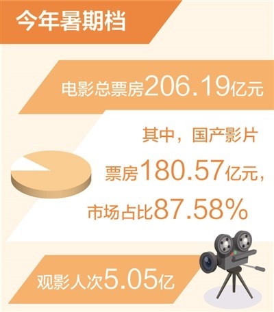 電影暑期檔票房達206.19億元 刷新歷史同檔期最高紀錄