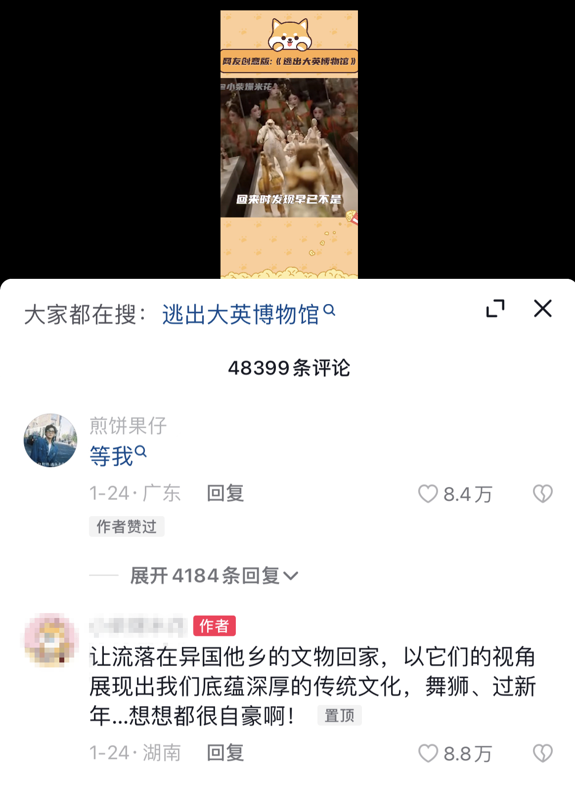 《逃出大英博物館》由兩位90后自媒體人“煎餅果仔”和“夏天妹妹噢”共同創(chuàng)作。短片上線前期,正逢大英博物館被多個國家要求歸還本國文物,戳中了每一個中國人強烈期盼流失海外文物早日回家的內(nèi)心。