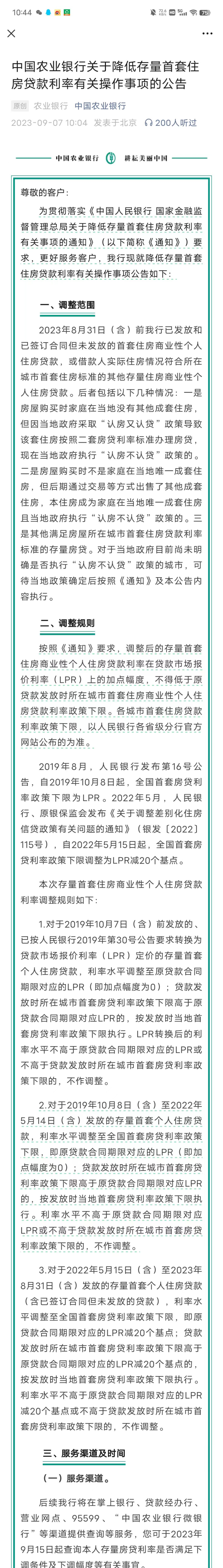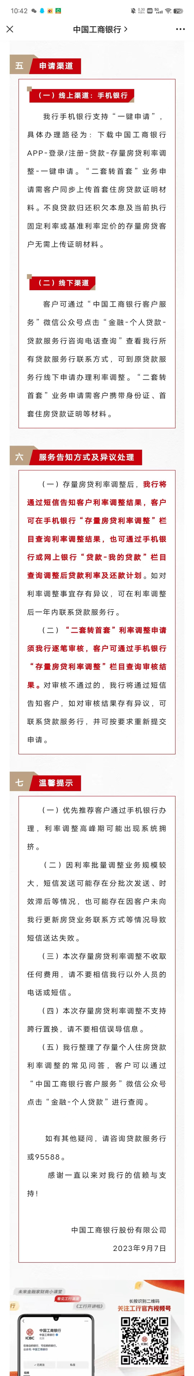 9月7日,中國農(nóng)業(yè)銀行、中國工商銀行相繼發(fā)布《中國農(nóng)業(yè)銀行關于降低存量首套住房貸款利率有關操作事項的公告》和《中國工商銀行關于存量首套個人住房貸款利率調整的公告》,公告內(nèi)容如下:
