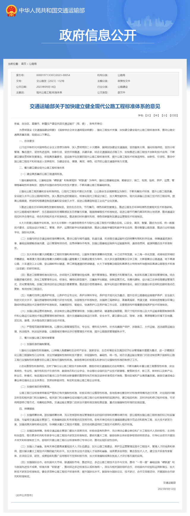 央視網(wǎng)消息:交通運(yùn)輸部發(fā)布關(guān)于加快建立健全現(xiàn)代公路工程標(biāo)準(zhǔn)體系的意見(jiàn)。其中提出,大力發(fā)展公路數(shù)字化標(biāo)準(zhǔn)。加大北斗等新一代通信信息技術(shù)與現(xiàn)代公路工程技術(shù)的融合應(yīng)用。以安全、高效、智慧、融合為主線(xiàn),統(tǒng)一數(shù)據(jù)技術(shù)要求,實(shí)現(xiàn)由設(shè)計(jì)到施工、管理、養(yǎng)護(hù)、運(yùn)營(yíng)的數(shù)字化和數(shù)據(jù)流轉(zhuǎn),推進(jìn)公路數(shù)字模型和數(shù)字孿生應(yīng)用,推動(dòng)智慧公路發(fā)展,推進(jìn)行業(yè)標(biāo)準(zhǔn)數(shù)字化、國(guó)際化共享。