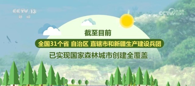 截至目前,全國(guó)31個(gè)?。ㄗ灾螀^(qū)、直轄市)和新疆生產(chǎn)建設(shè)兵團(tuán)已實(shí)現(xiàn)國(guó)家森林城市創(chuàng)建全覆蓋,城市建成區(qū)綠化覆蓋率由十年前的39.22%提高到現(xiàn)在的42.69%,城市人均公園綠地面積由十年前的11.8平方米提高到現(xiàn)在的15.29平方米。全國(guó)廣泛開(kāi)展鄉(xiāng)村綠化美化行動(dòng),建設(shè)各具特色的綠色村莊,認(rèn)定國(guó)家森林鄉(xiāng)村7586個(gè),村莊綠化覆蓋率達(dá)到32.01%。