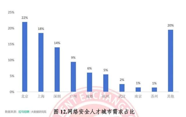 根據(jù)國家智慧教育公共服務(wù)平臺數(shù)據(jù),2023年網(wǎng)絡(luò)安全相關(guān)本科專業(yè)(信息安全、網(wǎng)絡(luò)空間安全、網(wǎng)絡(luò)安全與執(zhí)法)畢業(yè)生規(guī)模約為 1.45 萬人??傮w上,網(wǎng)絡(luò)安全產(chǎn)業(yè)人才供需關(guān)系為供不應(yīng)求?!秷蟾妗贩Q,根據(jù)拉勾招聘平臺數(shù)據(jù)顯示,最新網(wǎng)絡(luò)安全人才需求排名前六的城市分別是北京、上海、深圳、廣州、成都和杭州,占據(jù)市場總需求的75%左右。