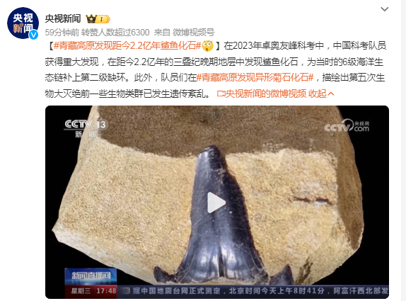 在2023年卓奧友峰科考中,中國科考隊(duì)員獲得重大發(fā)現(xiàn),在距今2.2億年的三疊紀(jì)晚期地層中發(fā)現(xiàn)鯊魚化石,為當(dāng)時的6級海洋生態(tài)鏈補(bǔ)上第二級缺環(huán)。此外,隊(duì)員們在#青藏高原發(fā)現(xiàn)異形菊石化石#,描繪出第五次生物大滅絕前一些生物類群已發(fā)生遺傳紊亂。