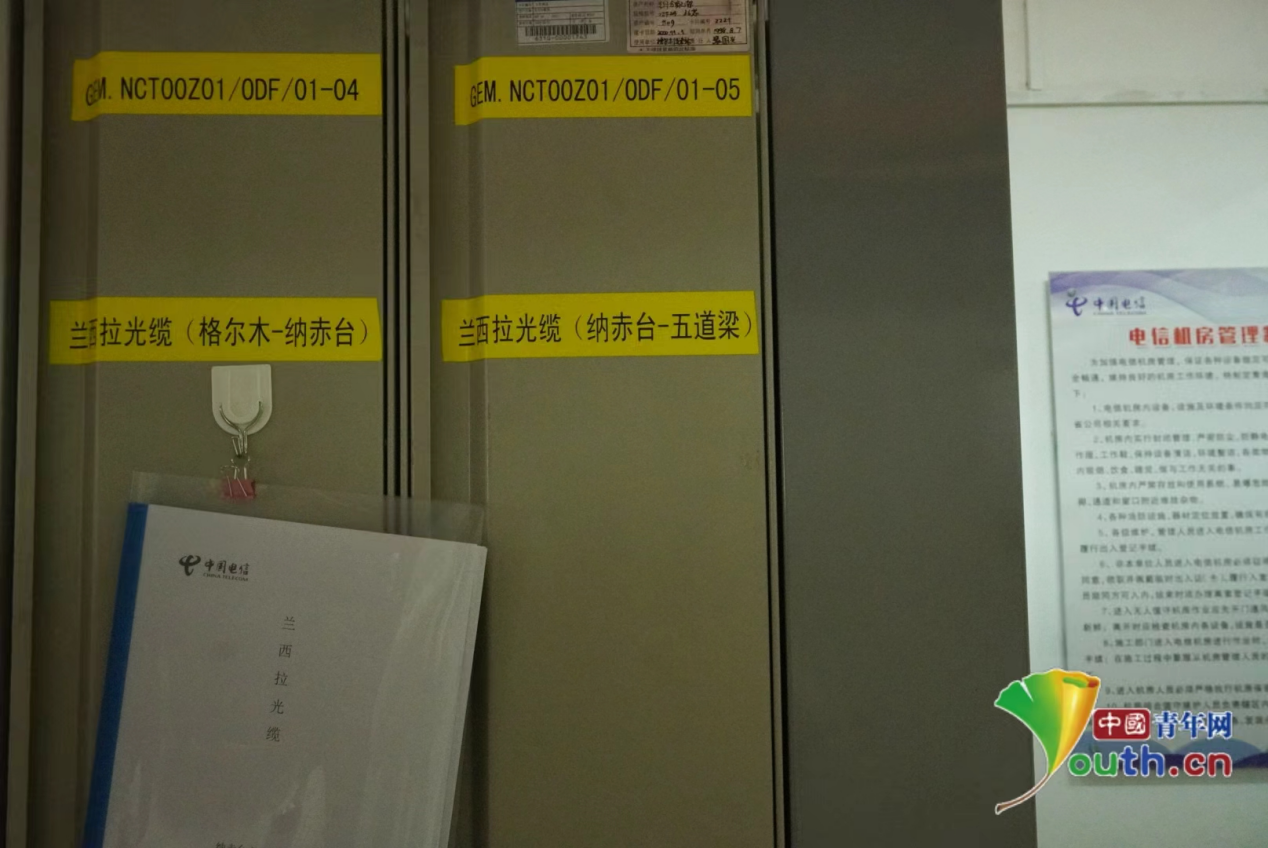 納赤臺(tái)機(jī)房蘭西拉光纜機(jī)柜?!≈袊?guó)青年網(wǎng)記者 曹迪攝