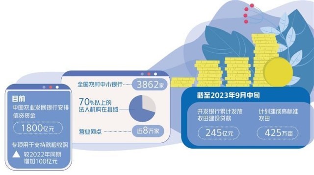 “下一步,開發(fā)銀行將持續(xù)發(fā)揮開發(fā)性金融功能作用,聚焦農業(yè)基礎設施精準補短板、強弱項,用好農田建設專項貸款,優(yōu)化信貸資源配置,堅持讓利于農,為高標準農田建設提供更有力的金融支持?!痹撠撠熑吮硎?,截至2023年9月中旬,開發(fā)銀行累計發(fā)放農田建設貸款245億元,計劃建成高標準農田425萬畝,其中2023年發(fā)放53億元,重點支持了吉林、江蘇、四川、廣西、寧夏等省市的高標準農田建設和農田基礎設施改造提升工程。