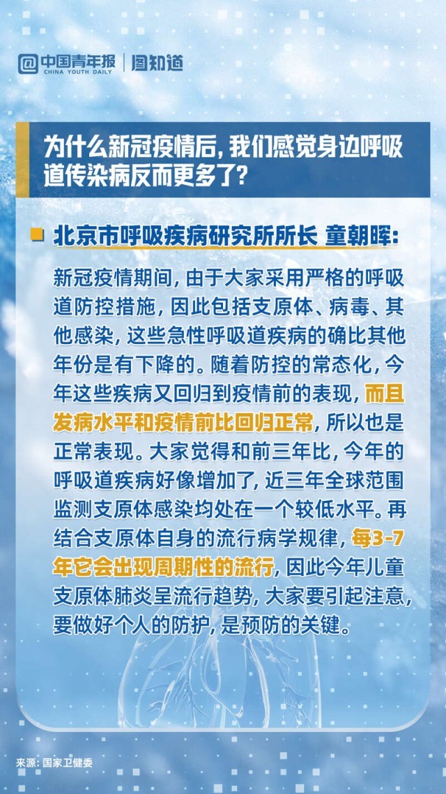 肺炎支原體感染和普通流感有什么區(qū)別?今年肺炎支原體感染有何特點?為什么新冠疫情后,我們感覺身邊呼吸道傳染病反而更多了?目前我國新冠形勢究竟如何?時值冬季,新冠病毒是否會出現(xiàn)再次變異?多重病毒疊加混合感染后如何治療?今天下午,國家衛(wèi)健委就冬季呼吸道疾病防治有關情況回答了熱點提問。